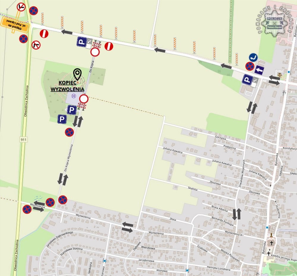 W dniu 12 sierpnia na sąsiadującym z Kopcem odcinku ul. Jana Pawła II od skrzyżowania z ul. Inwalidów Wojennych do Drogi Wojewódzkiej nr 911 wprowadzony zostanie ruch jednokierunkowy z kierunkiem jazdy od ul. Bytomskiej do DW 911. Dojazd do ulicy Bytomskiej od strony DW 911 zostanie zapewniony poprzez wyznaczony objazd ulicą Pod Lipami.