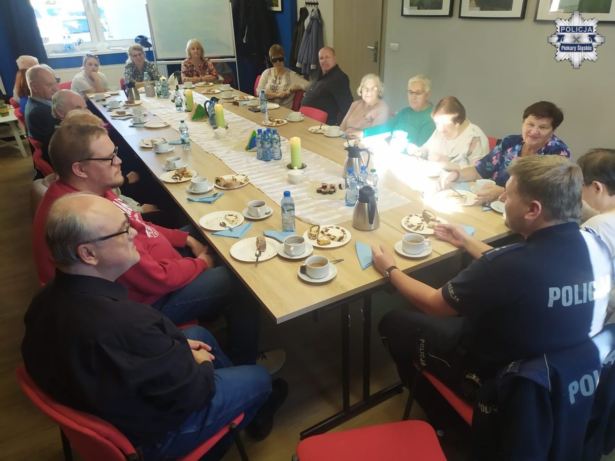 Wczoraj z okazji Europejskiego Dnia Seniora oraz niedawno obchodzonego Międzynarodowego Dnia Białej Laski, piekarscy dzielnicowi odwiedzili Polski Związek Niewidomych Koło w Piekarach Śląskich, gdzie z uczestnikami omówili najczęstsze metody działania oszustów m.in. „na policjanta” czy „na listonosza”. Poruszyli także temat bezpieczeństwa na drodze oraz jak policjanci mogą lepiej wspierać osoby z dysfunkcją wzroku- zarówno podczas interwencji, jak i w sytuacjach codziennych.
