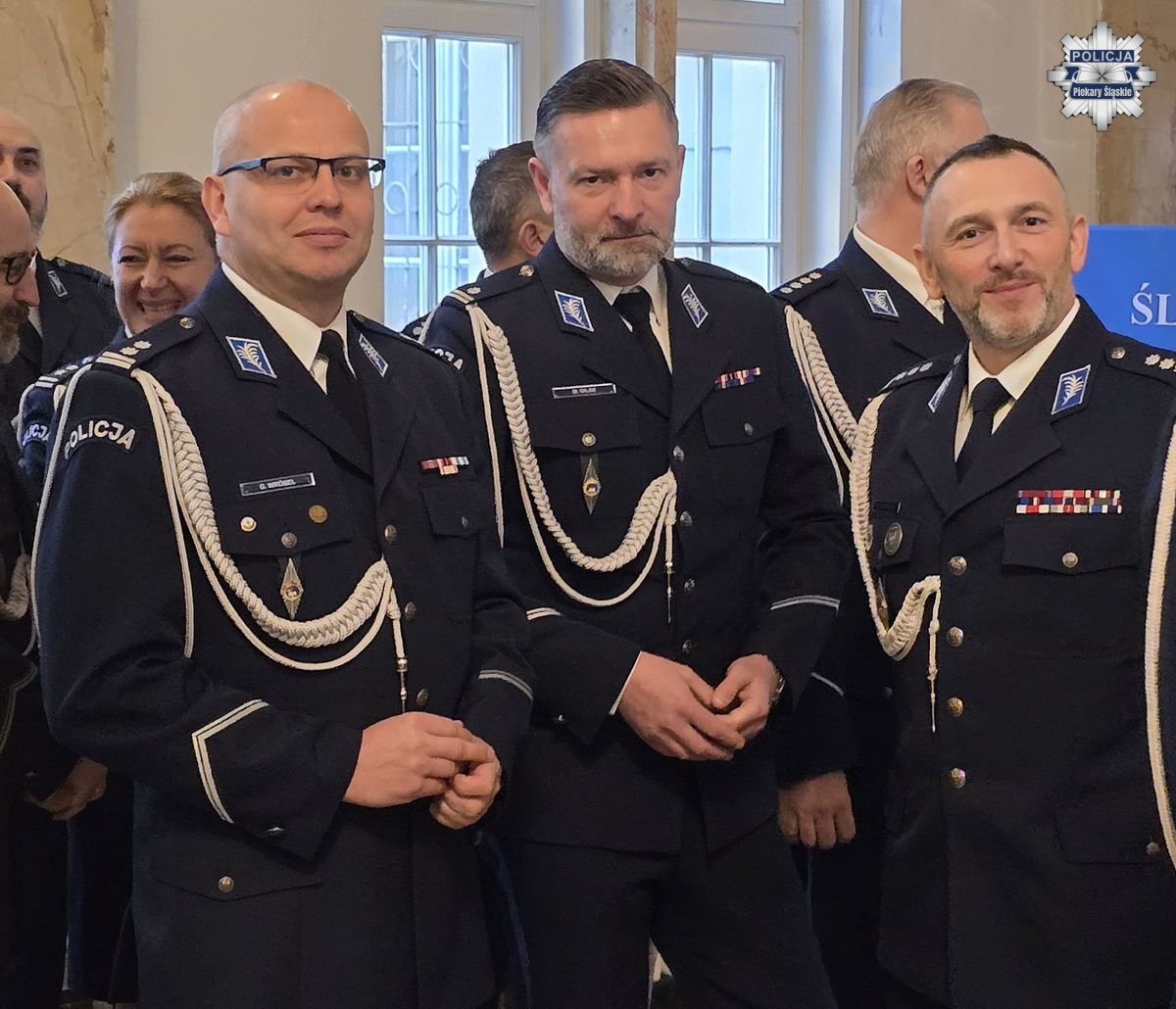 W uroczystości uczestniczyli m.in. nadinsp. Mariusz Krzystyniak - Komendant Wojewódzki Policji w Katowicach, Marek Wójcik - Wojewoda Śląski, insp. Rafał Stanisławski - Komendant Szkoły Policji w Katowicach, insp. Marek Kasztelan - Naczelnik Zarządu w Katowicach CBŚP, mł. insp. Damian Pawłowski - Zastępca Naczelnika Zarządu w Katowicach CBZC, a także komendanci miejscy i powiatowi Policji garnizonu śląskiego, w tym Pierwszy Zastępca Komendanta Miejskiego Policji w Piekarach Śląskich podinspektor Mateusz Gilge, dowódcy Oddziału i Samodzielnych Pododdziałów Prewencji Policji, kapelan policyjny - ksiądz Adam Wycisk oraz przedstawiciele związków zawodowych policjantów.