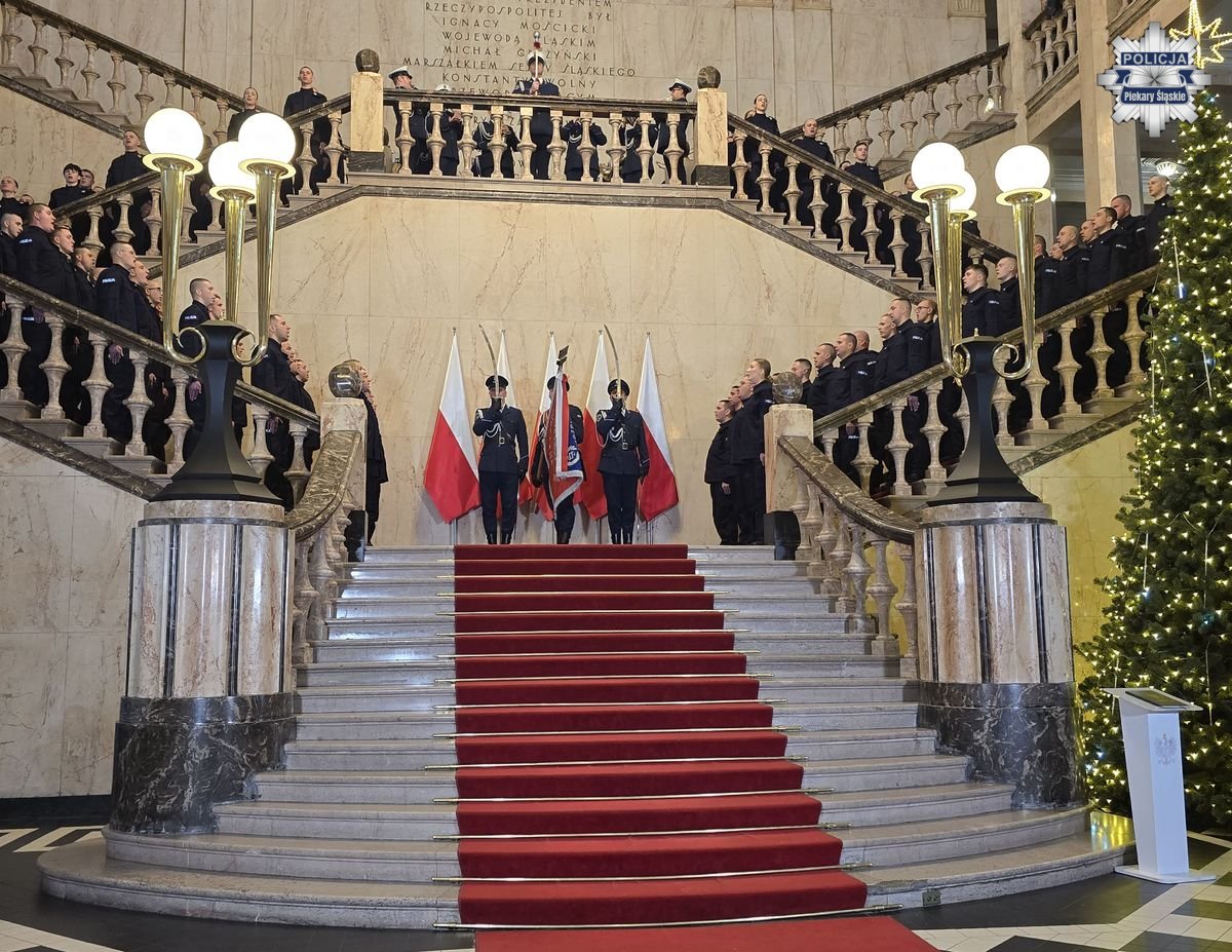 Wczoraj w samo południe, w reprezentacyjnym Westybulu Śląskiego Urzędu Wojewódzkiego w Katowicach, odbyło się pierwsze w 2026 roku uroczyste ślubowanie nowo przyjętych policjantów. Rotę ślubowania przyjął Komendant Wojewódzki Policji w Katowicach nadinsp. Mariusz Krzystyniak, a w wydarzeniu uczestniczył Wojewoda Śląski Marek Wójcik, który wraz z Komendantem podkreślił rangę policyjnej służby i złożył życzenia odwagi, wytrwałości oraz satysfakcji z pracy na rzecz bezpieczeństwa mieszkańców województwa. Po zakończeniu szkolenia dwoje policjantów rozpocznie pracę w piekarskiej jednostce.