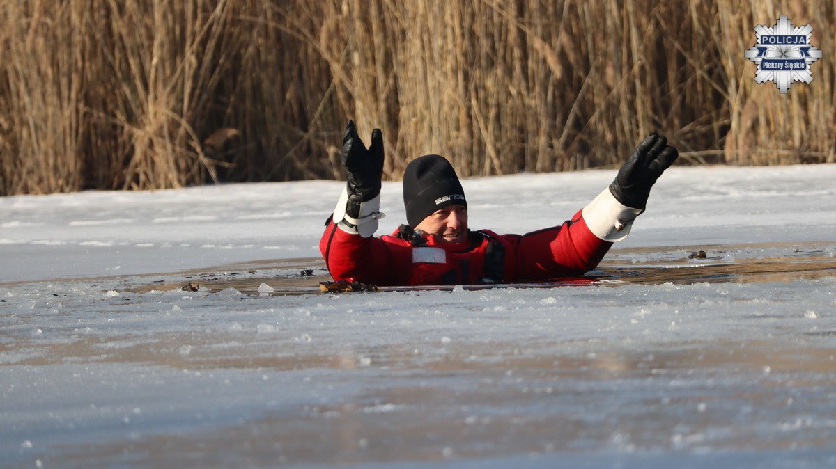 Podczas ćwiczeń, które odbyły się wczoraj na zamarzniętym zbiorniku wodnym, policjanci i strażnicy miejscy mieli okazję na własnej skórze przekonać się, jak trudne i niebezpieczne jest wydostanie się z lodowatej wody. Ubrani w specjalistyczne kombinezony ochronne, wchodzili do przerębli, gdzie pod okiem doświadczonych ratowników WOPR i strażaków ćwiczyli procedury samoratowania oraz udzielania pomocy osobom, pod którymi załamał się lód.